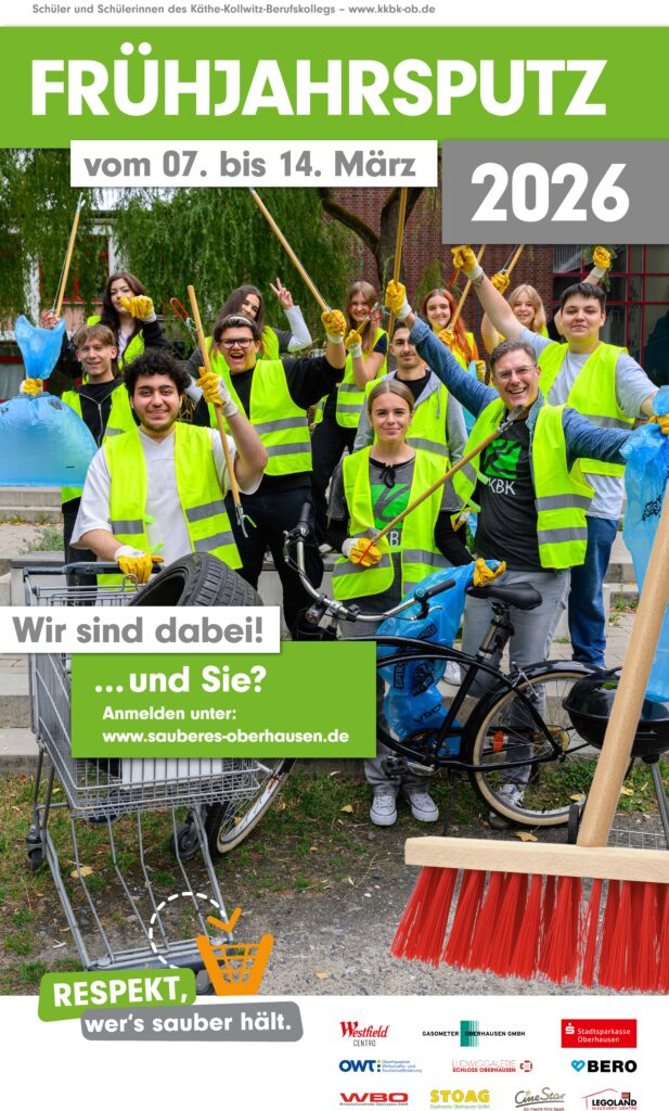 Los geht’s! Vom 07. bis 14. März 2026 heißt es in Oberhausen wieder: Ärmel hochkrempeln und gemeinsam anpacken. Bringen wir unsere Stadt zum Strahlen, setzen wir ein starkes Zeichen für Sauberkeit und starten frisch in den Frühling. Der große Frühjahrsputz, organisiert vom Bereich Umwelt der Stadt Oberhausen und der WBO GmbH, ist die größte Müllsammelaktion der Stadt – und Sie sind herzlich eingeladen, dabei zu sein! Zur Eröffnung plant die städtische Abfallberatung gemeinsam mit der BUND-Kreisgruppe Oberhausen eine Aktion gegen das achtlose Wegwerfen von Zigarettenstummeln, mit dem Ziel die Folgen sichtbar zu machen. Damit erfolgt der Startschuss für die Aktionswoche, in der alle sich für die Sauberkeit der Stadt engagieren können.
